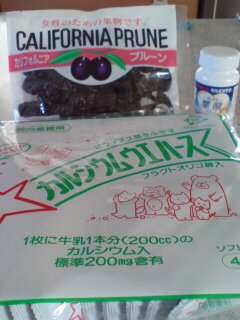 プルーンとカルシウムウェハースと葉酸のサプリメント。