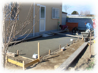 今日は、朝からコンクリート流して、今綺麗にならしてくれてます(↓)