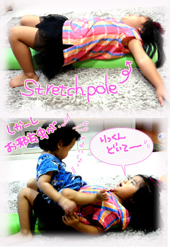 画像のストレッチポールの上に寝っ転がって、